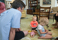 Over the course of a week, we enjoyed watching great-granddaughters meet one another, the nearly impossible task of fixing a chair, an impromptu yoga lesson, bagpipes on the lawn, sparklers on the 4th of July, an overflowing buffet table and overwhelming affection for a special man.