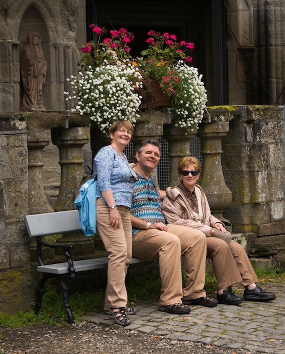 Claudia, Joe and Margret inside the Löwenburg courtyard