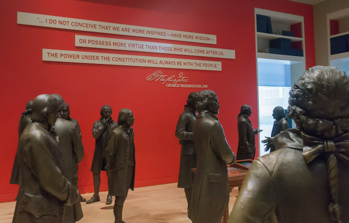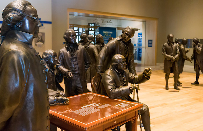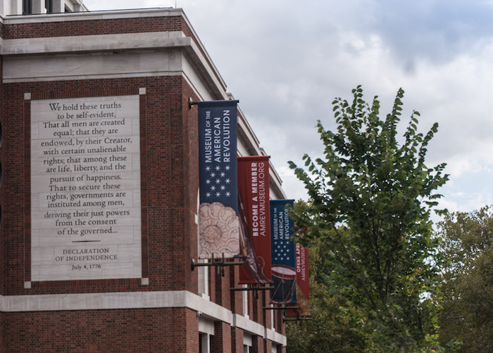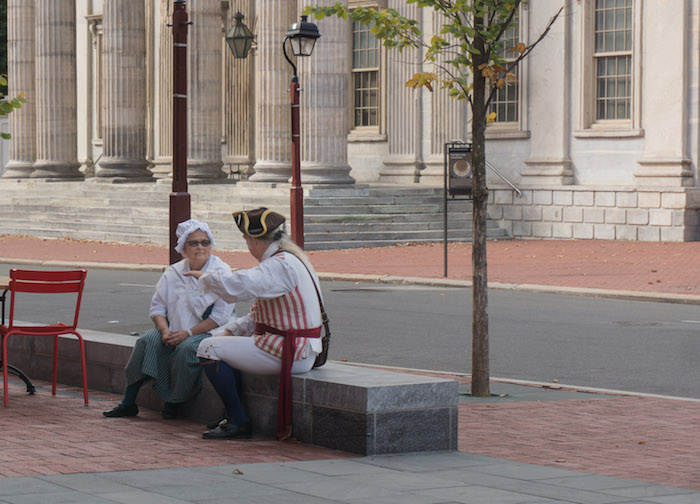 Inside the Constitution Center, we met the Founding Fathers (lifesize bronze versions). Later in the week, we came back to explore the Museum of the American Revolution, below, where we spotted a few colonists sitting outside.
