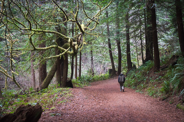 Walking into the preserve, under the spreading branches of a Bigleaf Maple