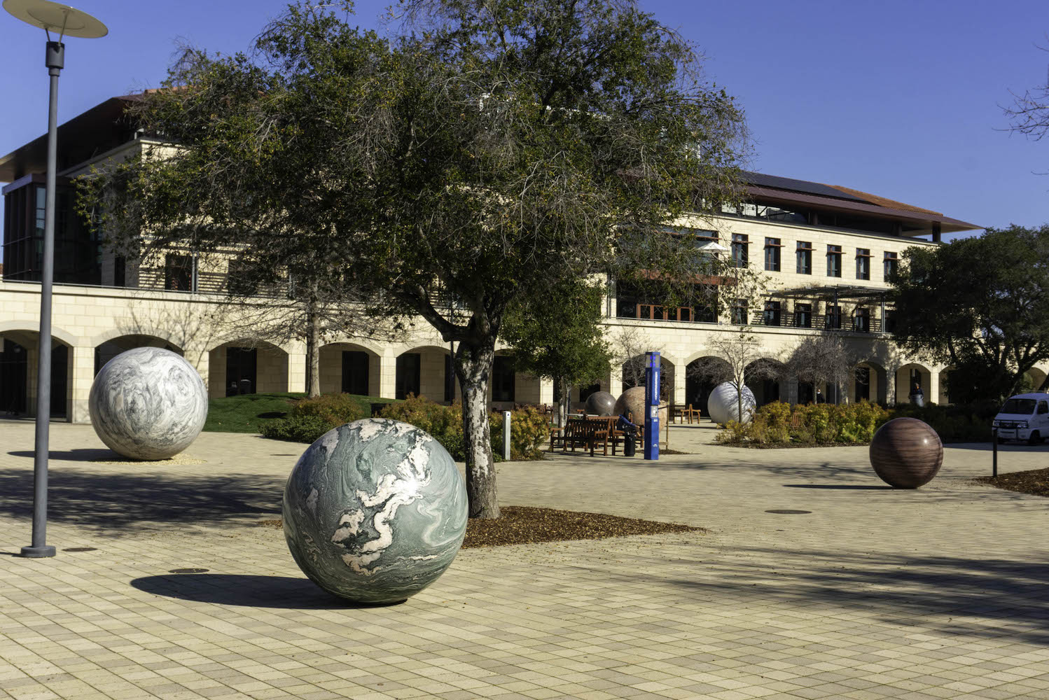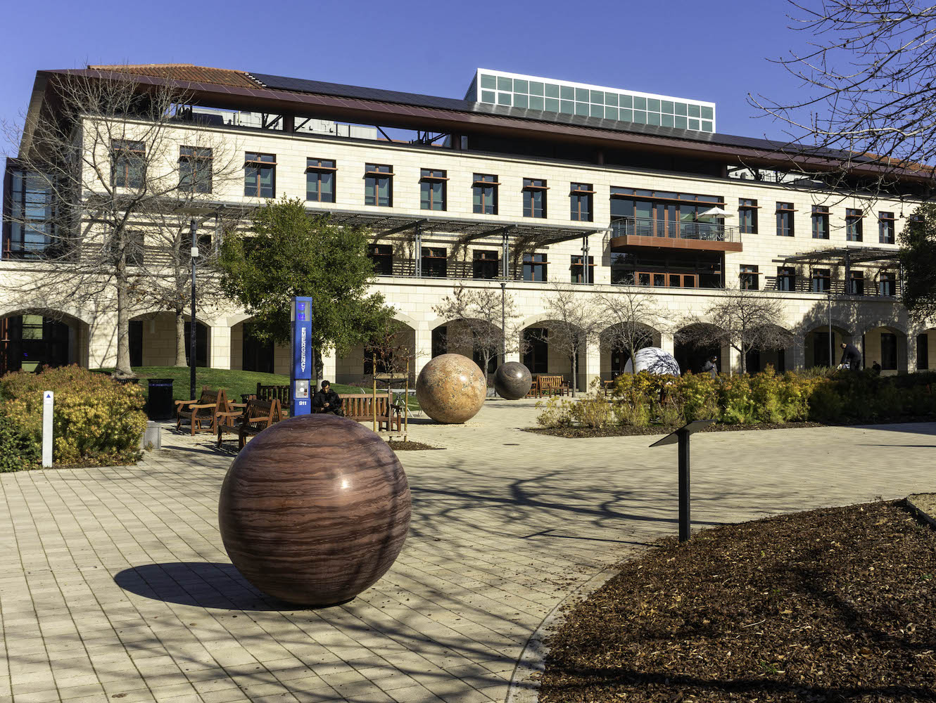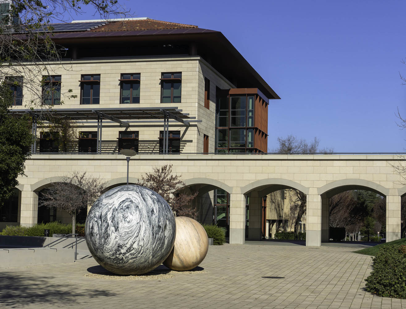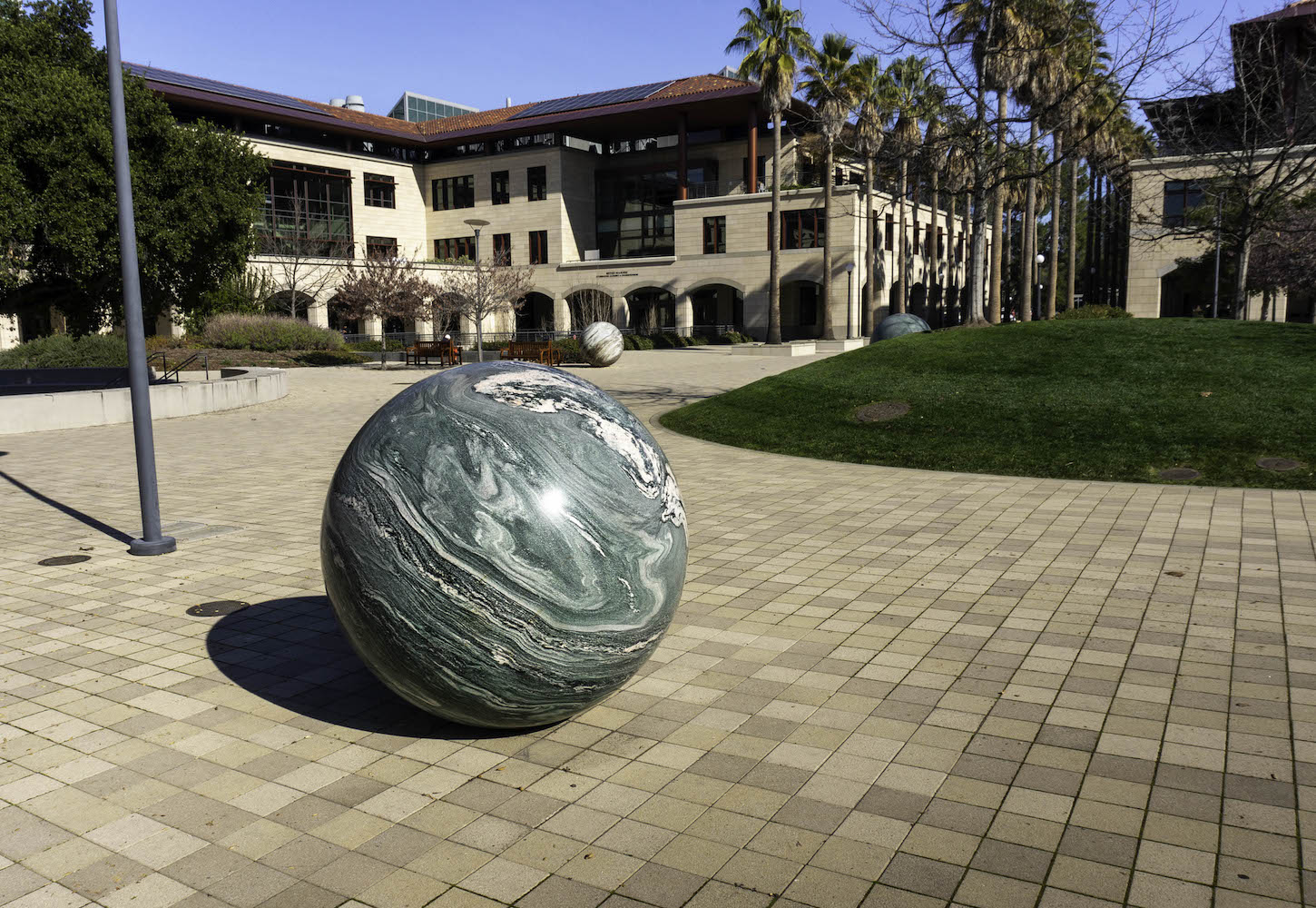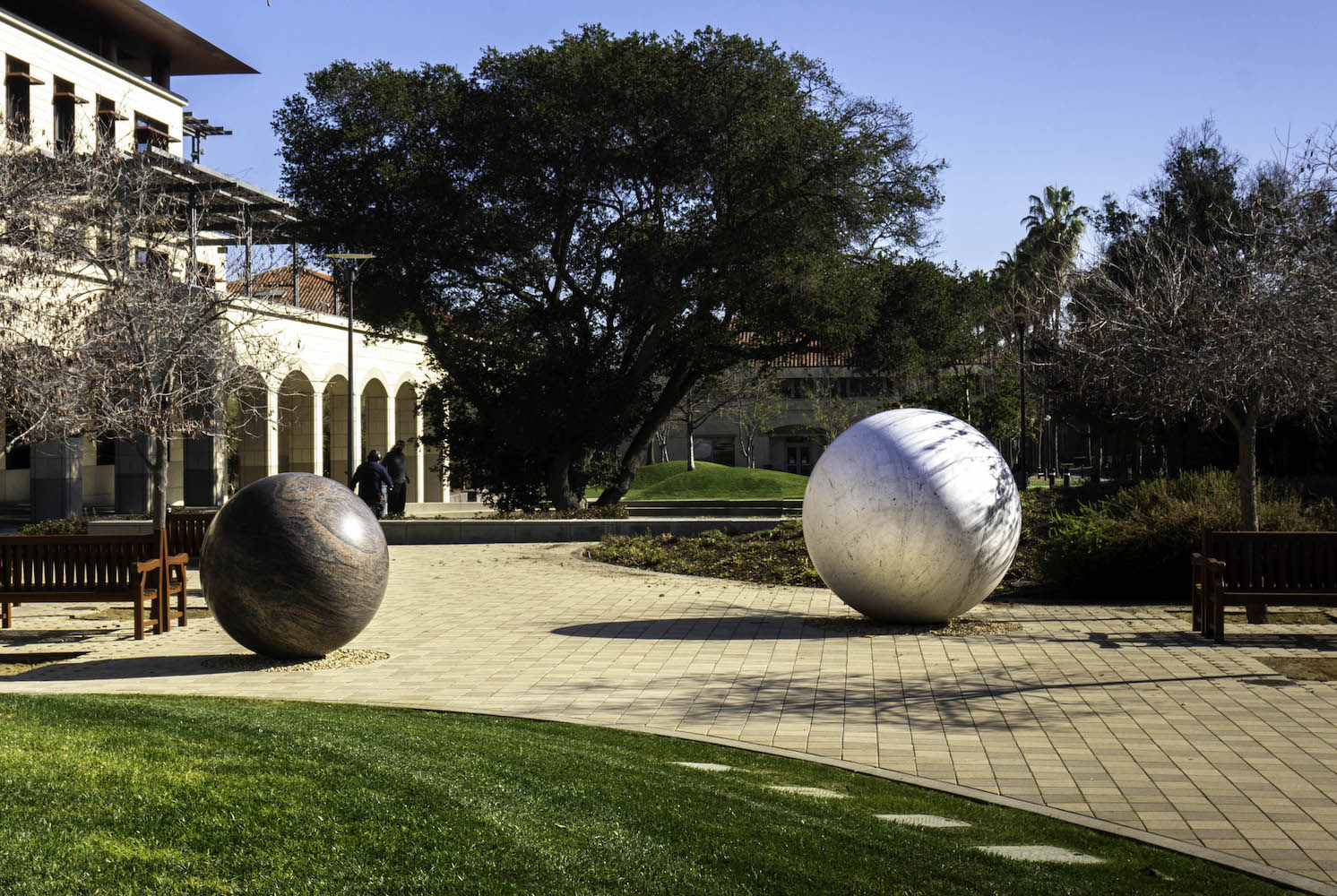 Installed in April, 2021, this remarkable work consists of 12 stone spheres of varying sizes positioned on the courtyard of Stanford University's Science and Engineering Quad. Each sphere consists of natural stone formed over eons of geologic history. In her statement about this work, the artist, Alicja Kwade, said: "True to the meaning of the Latin phrase pars pro toto – “a part for the whole” – the stones individually and collectively evoke the micro and macro scales of our existence."