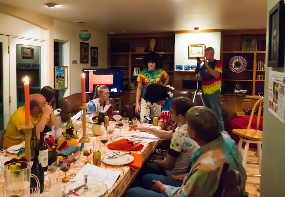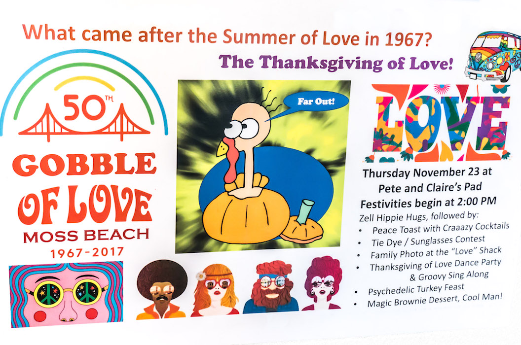 Far out, indeed! We were invited to Pete and Claire's Thanksgiving celebration where, in honor of the 50th anniversary of the Summer of Love, there was lots of tie-dyed stuff and groovy music. The food, libations, and fellowship gave us more reasons to be thankful.